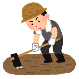 「彼は農具を準備すると、精力的に畑を耕し始めた」